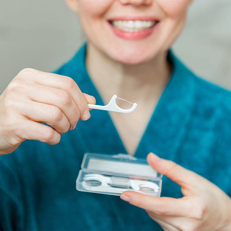 Sáu tùy chọn dây: nylon, PEFE, cotton, PE, UHMWPE và than củi, thích hợp cho các khoảng răng tiêu chuẩn, khe hở mắc cài và nướu nhạy cảm.